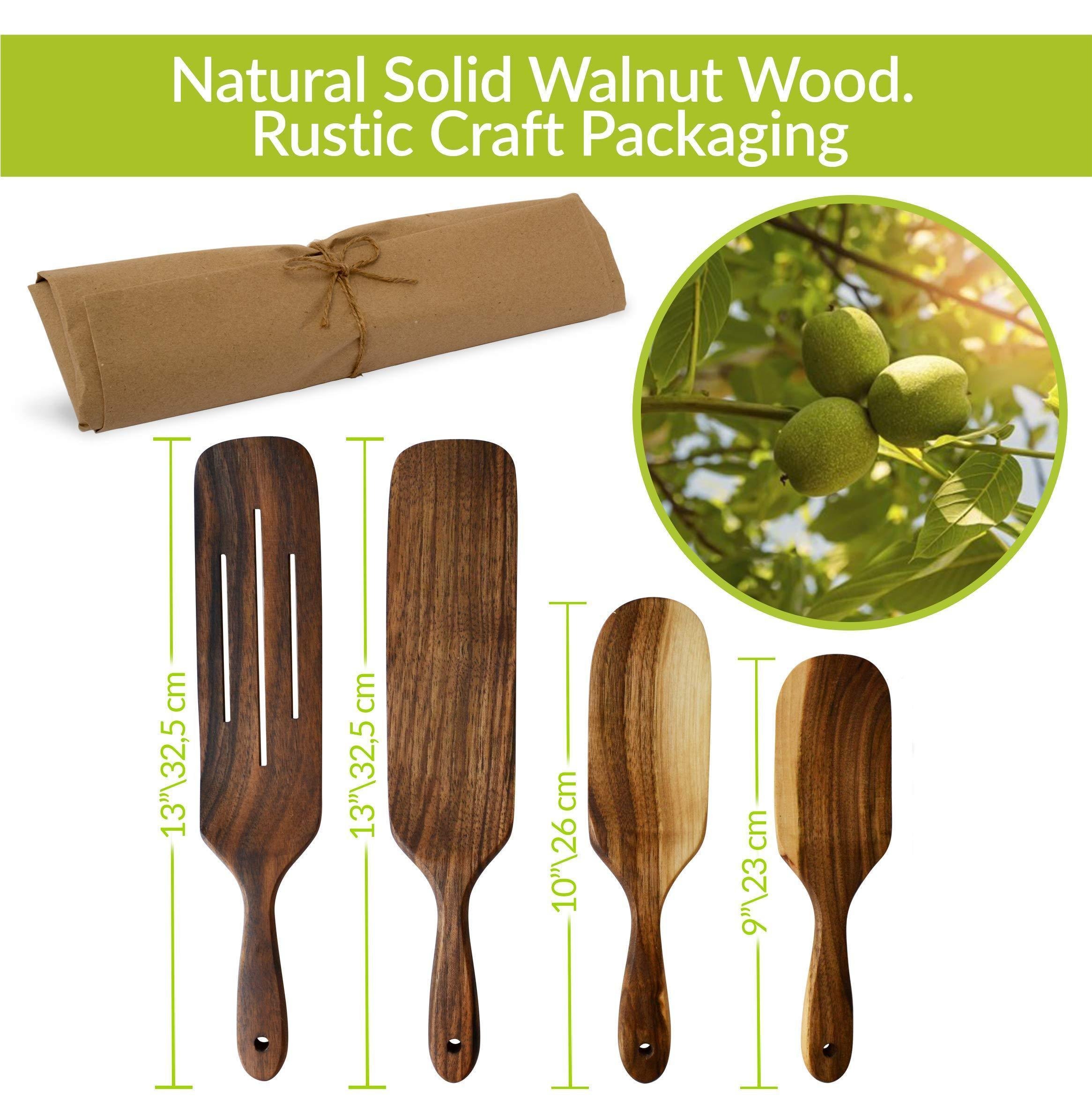 Walnut Wood Wooden Spoons for Cooking Kitchen Utensils Spatula Set Spurtle Supplies Set of 4 Pcs